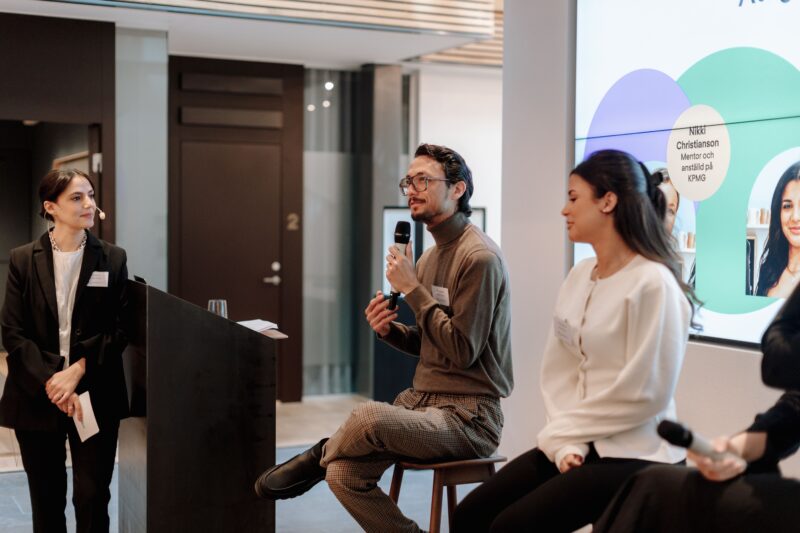 Samtalet under lunchen leddes av Mentor Sveriges marknadschef Sofia Kacim som pratade med mentorparet Nikki och Melek.