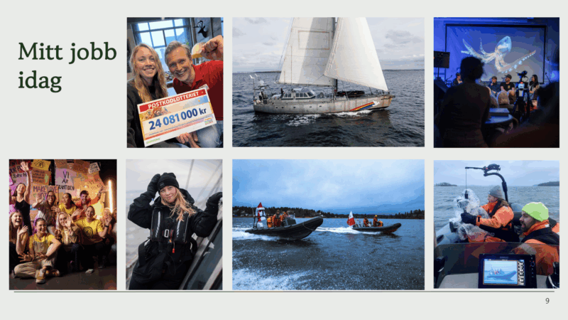 Hon har bland annat seglat med Greenpeace segelfartyg Witness från Oslo till Göteborg.