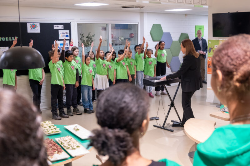 Besöket inleddes med sång och musik från årskurs 3 och rektor Ulrika Nimstrand berättade om samarbetet med Mentor Sverige: