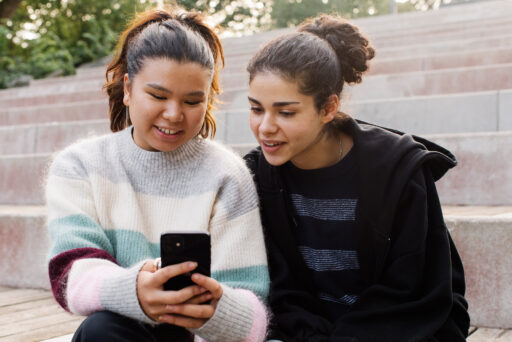 Två ungdomar som tittar på en mobiltelefon